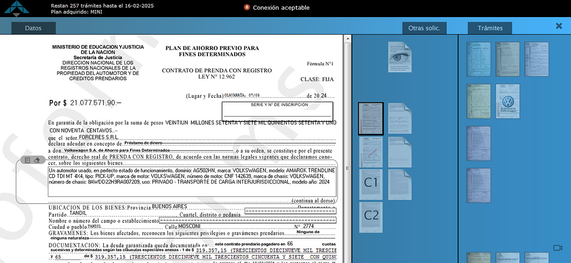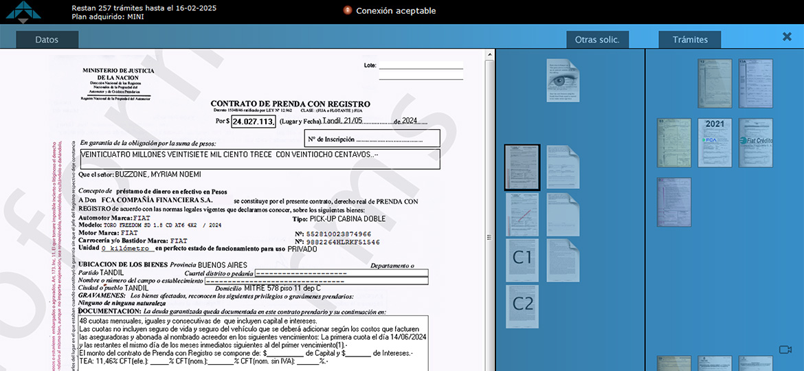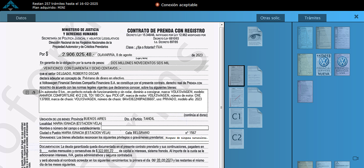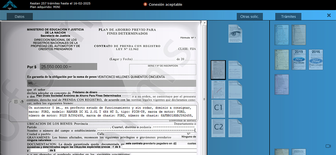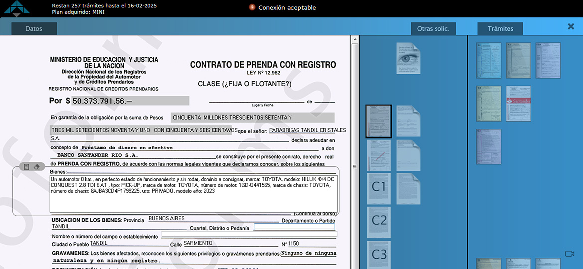 • Los datos aparecen sobre las S.T., formularios, notas, DD.JJ o contratos prendarios.